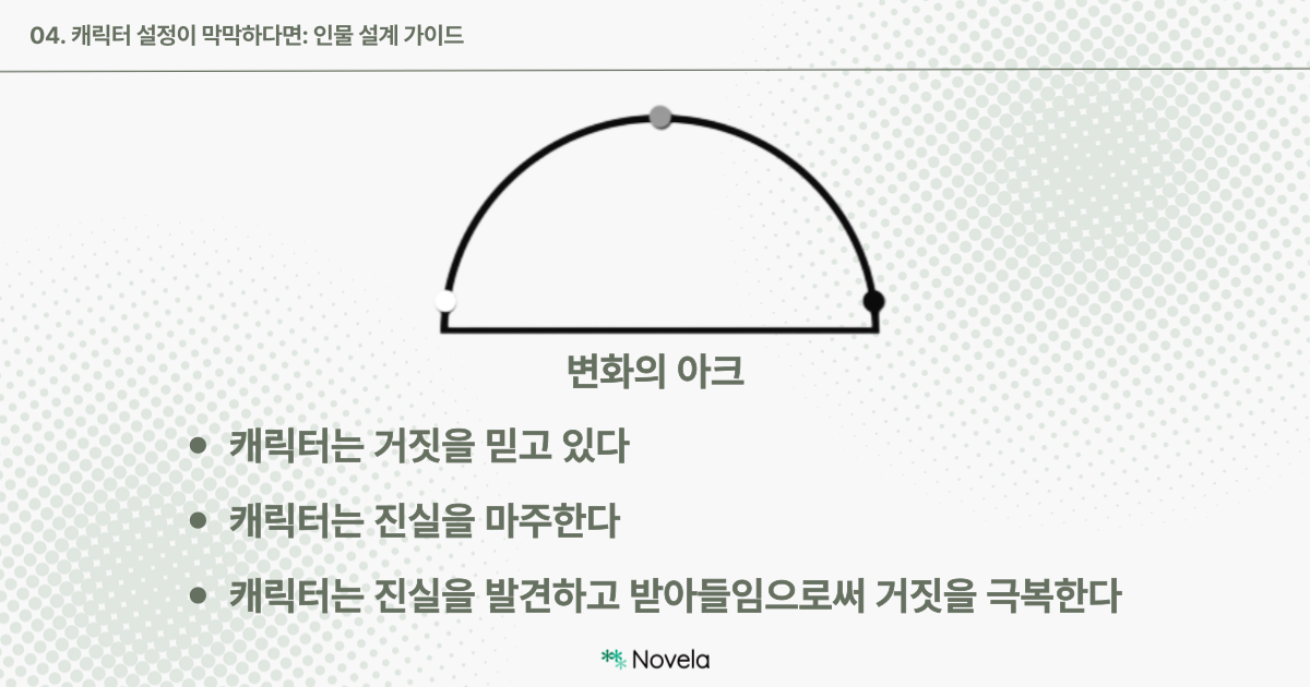 이런 내용을 담고 있어요! 1. 입체적 캐릭터 만들기 : 평면적 vs 입체적 인물 2. 욕망, 결함, 갈등으로 생명력 불어넣기 3. 성장 곡선 : 캐릭터 아크와 변화 단계 그리기