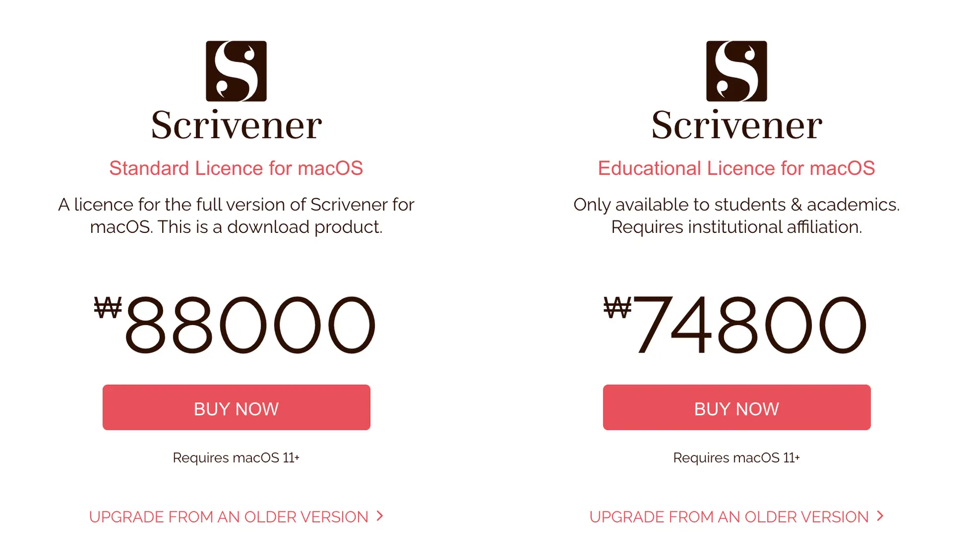 윈도우와 맥 버전 모두 있고 (가격은 약 88,000원, 스크리브너 공식 사이트 참고)